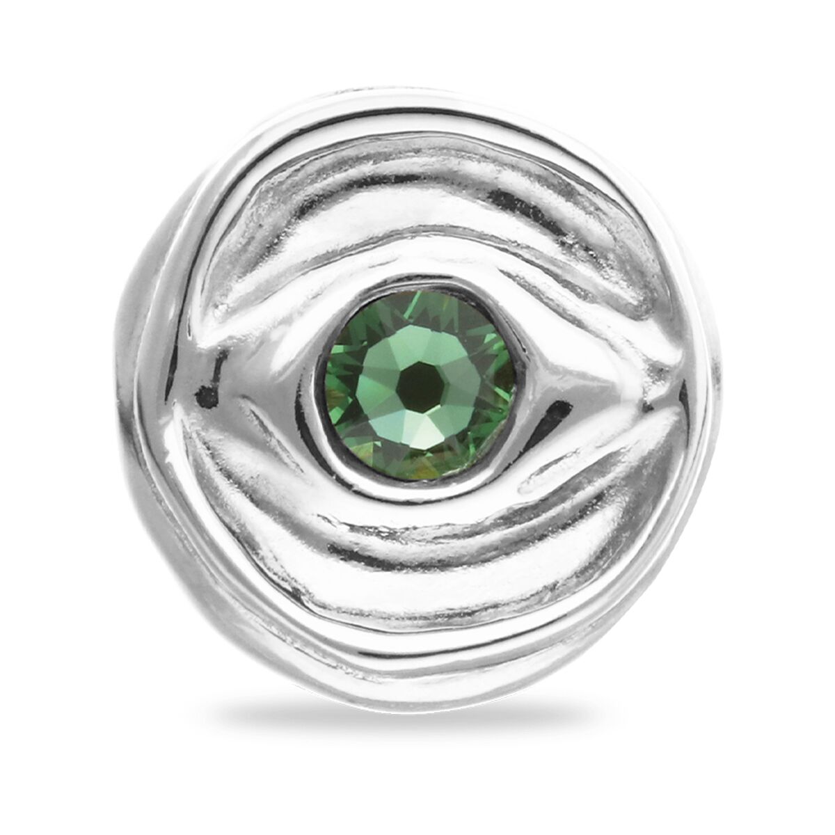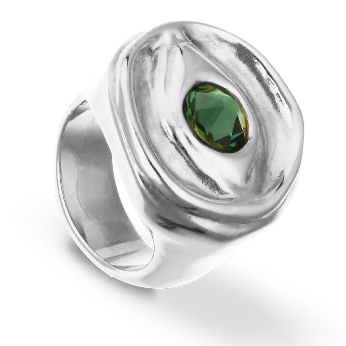 В центре кольца сверкает зелёный кристалл, словно капля росы на рассвете, наполненная энергией жизни и свежестью природы. Его глубокий оттенок завораживает и пробуждает ощущение спокойствия, помогая найти баланс даже в самых бурных днях.