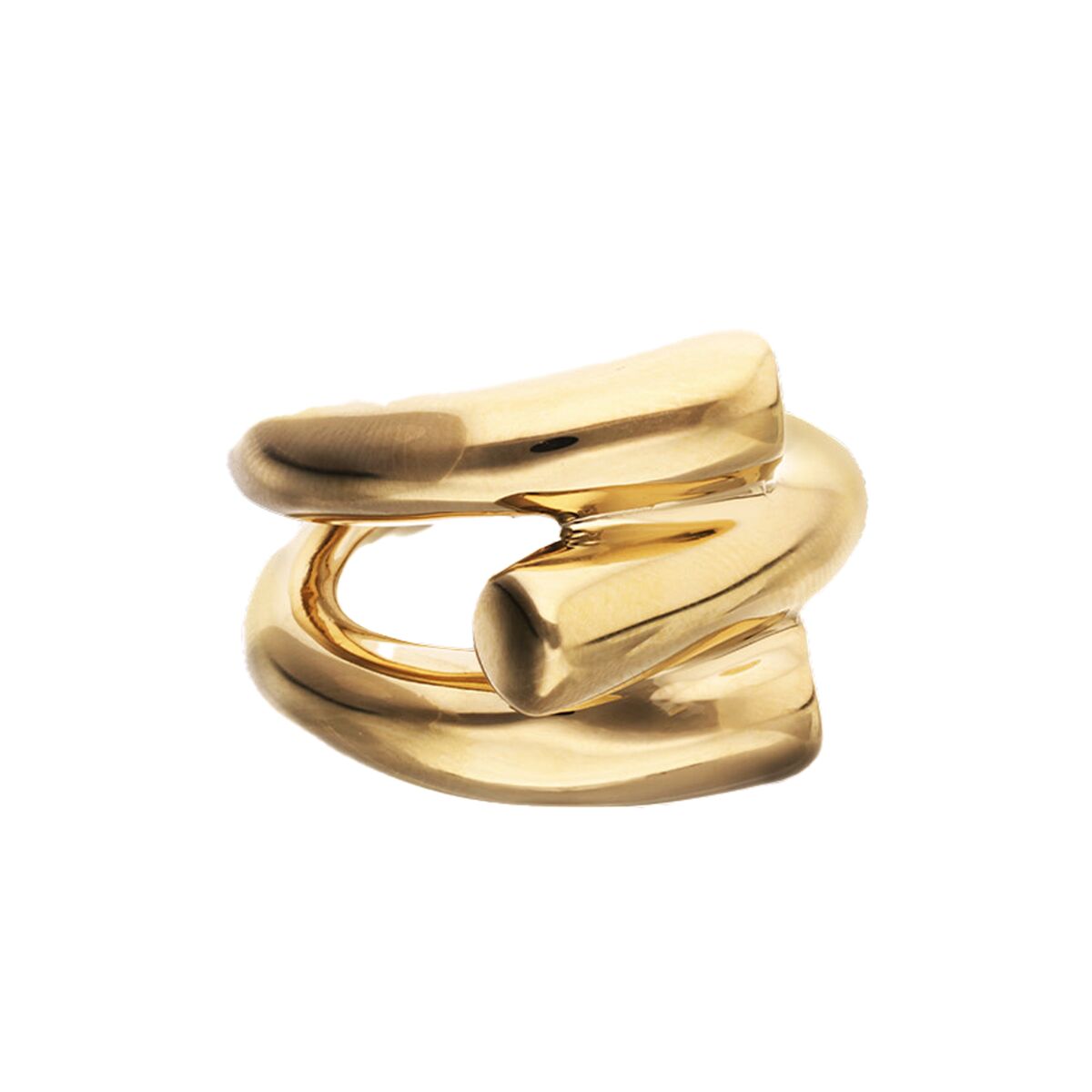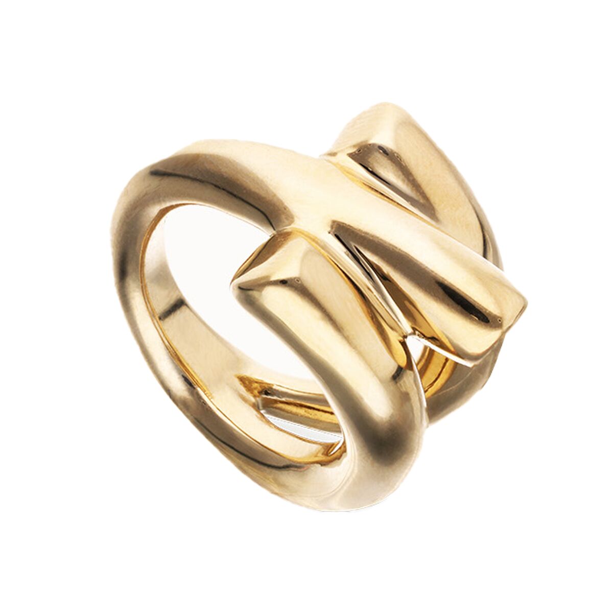 Кольцо Ветвь двойная ROOTS, с позолотой — металлическое кольцо с покрытием из позолоты в мотиве двойной ветви из коллекции ROOTS. Идеальное украшение для стильного акцента в образе или ежедневного ношения.