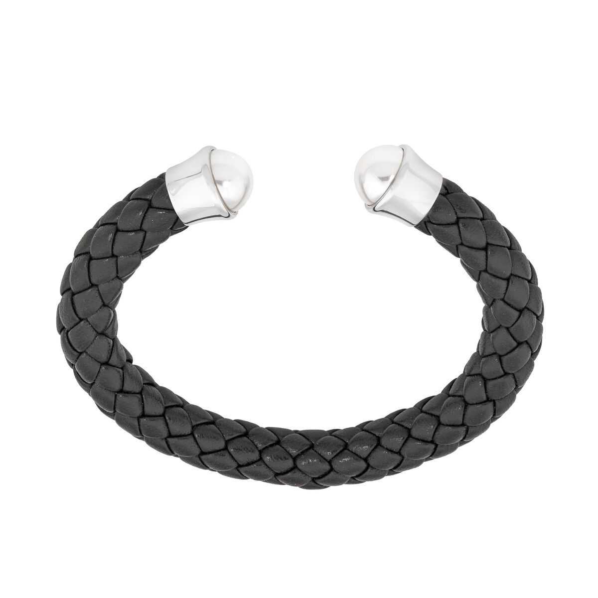 Описание Кожаный браслет с жемчугом мабэ черный Majorica Isla