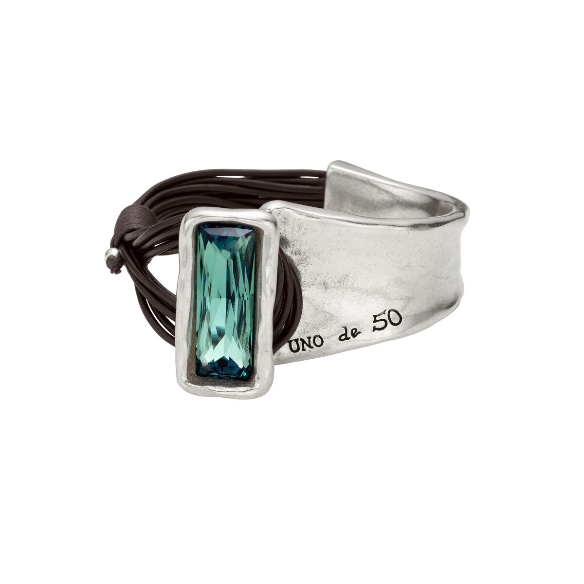 Особенности Кожаный браслет с серебряными вставками и кристаллом Сваровски UNOde50 Aurora Borealis