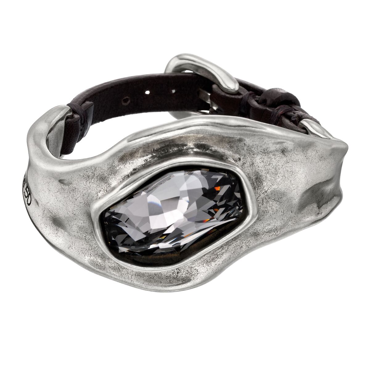 Жесткий браслет из серебра и кожи с кристаллом Сваровски UNOde50 Awesome