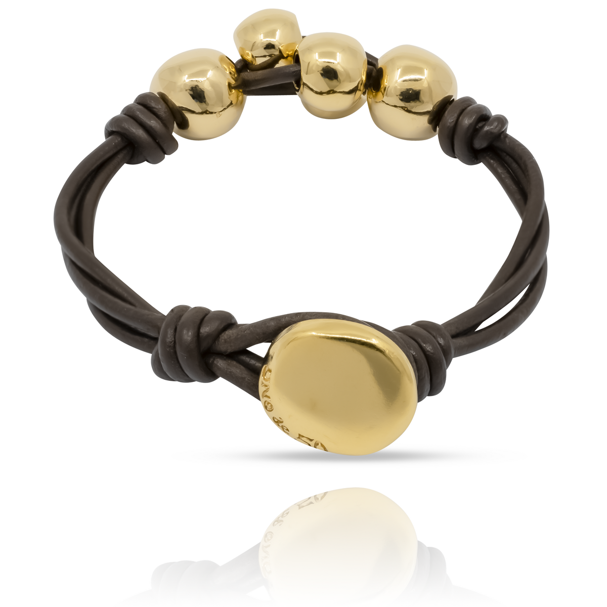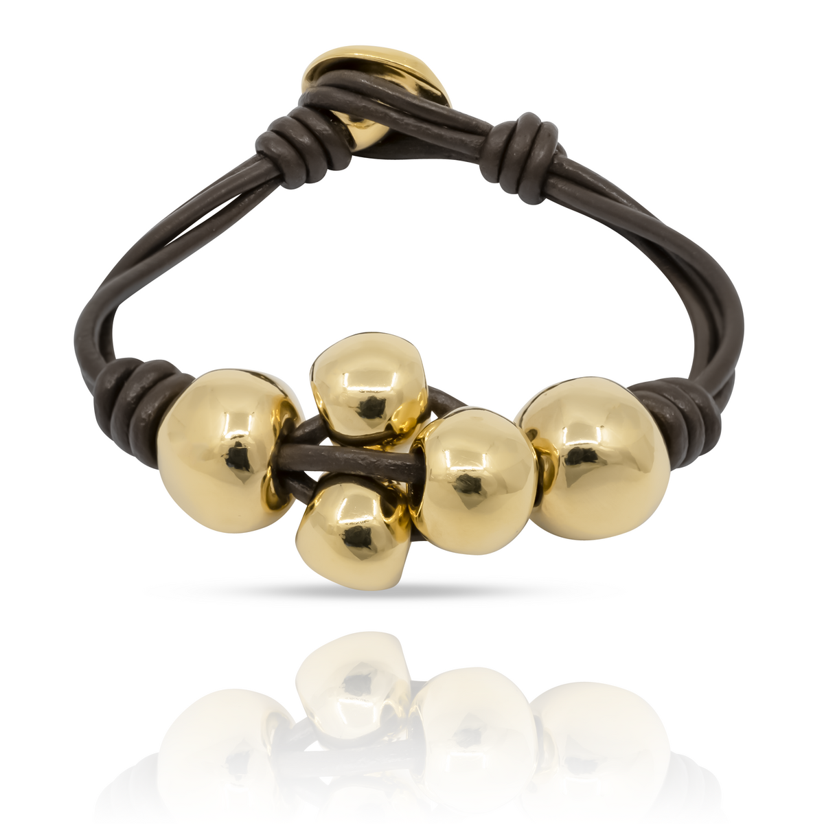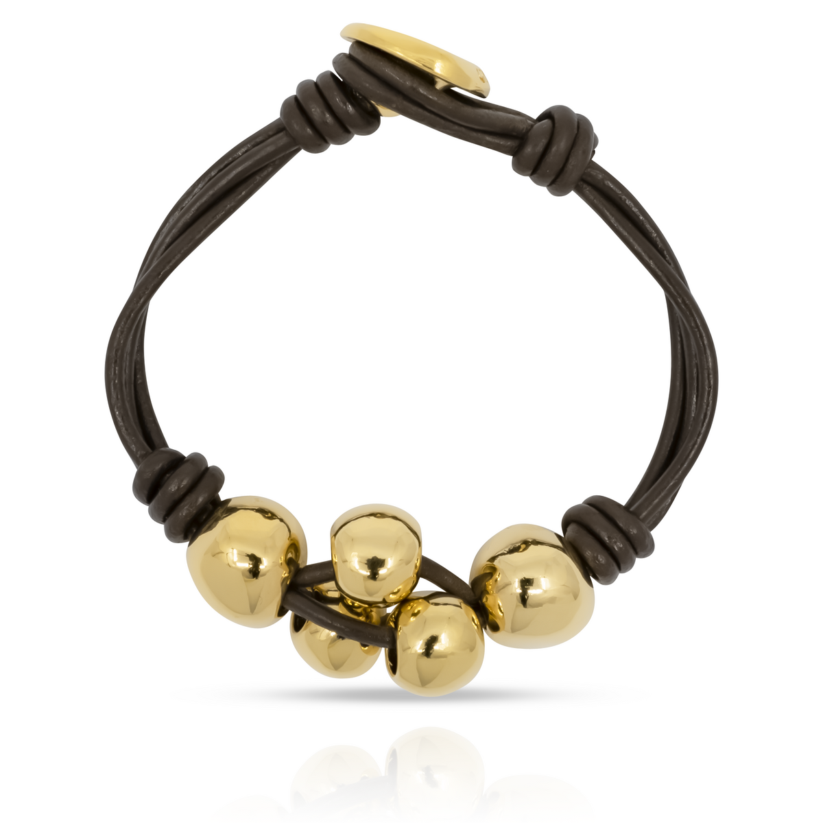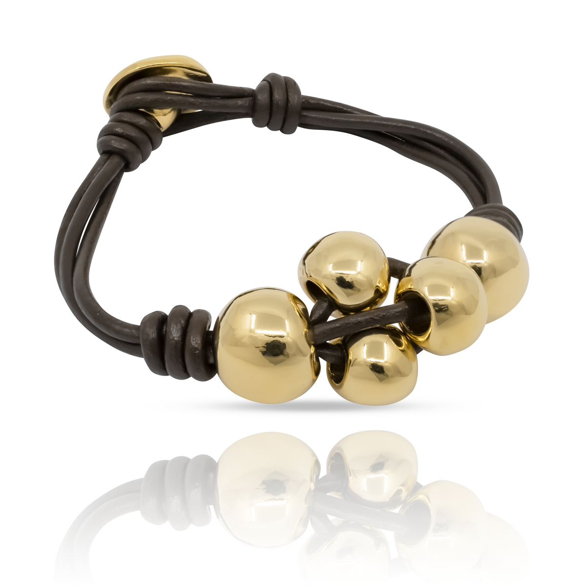 Золотой браслет женский из кожи на руку с большими бусинами UNode50 Ball by ball