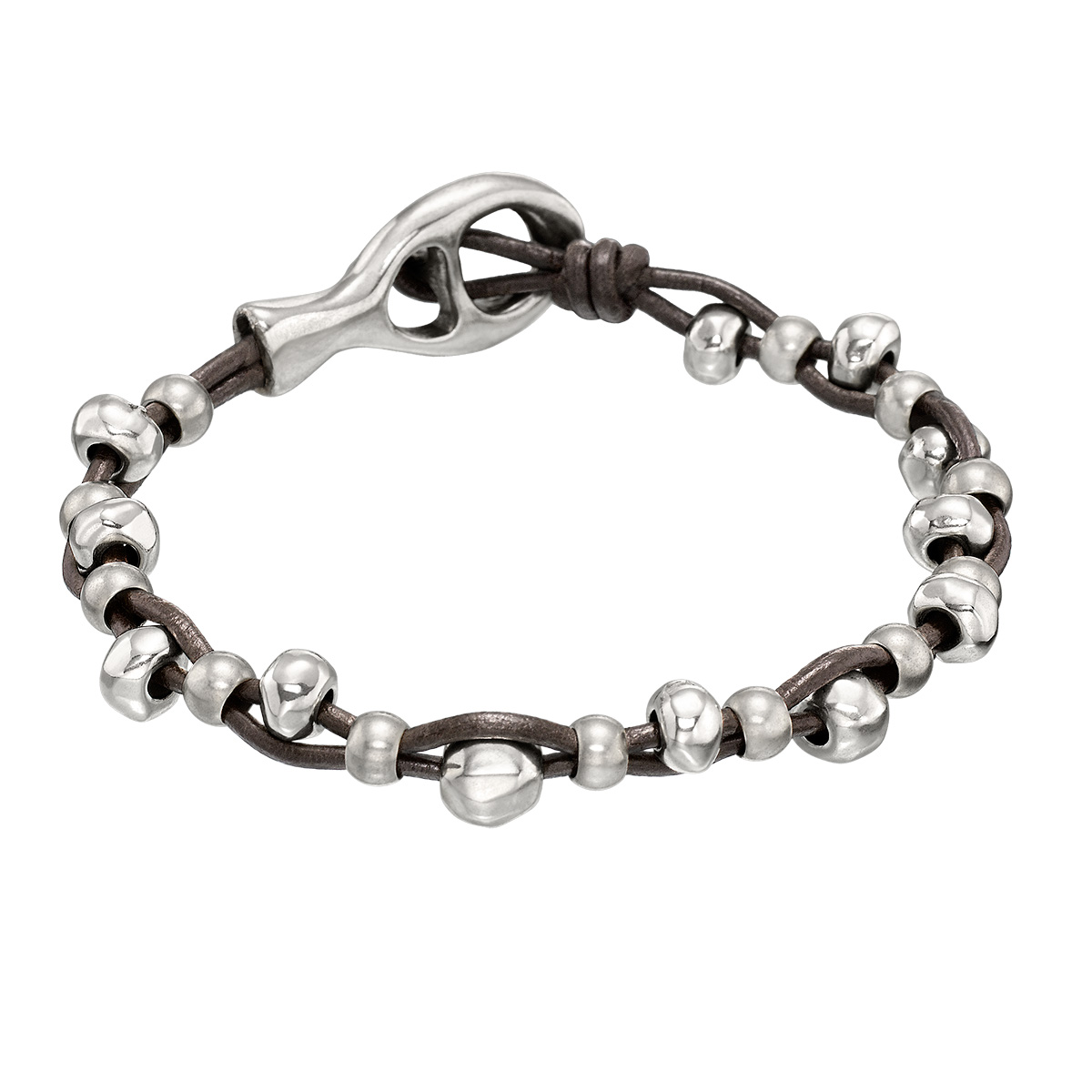 Кожаный браслет женский с серебряными вставками из бусин UNOde50 Balley