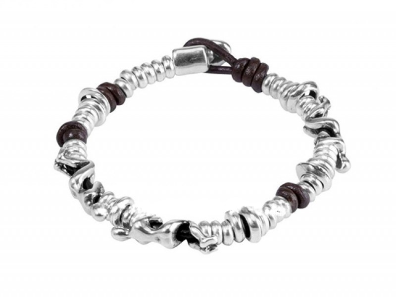 Кожаный браслет с серебряными вставками UNOde50 Be a climb