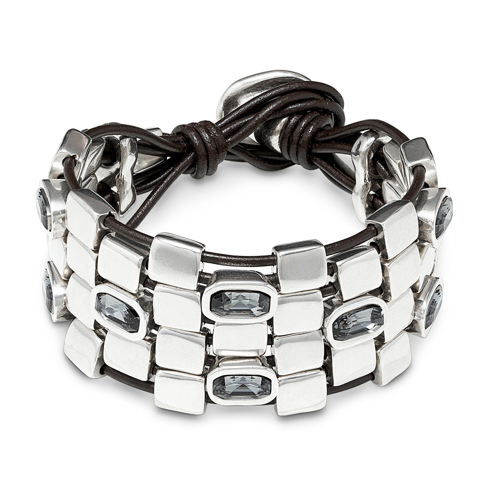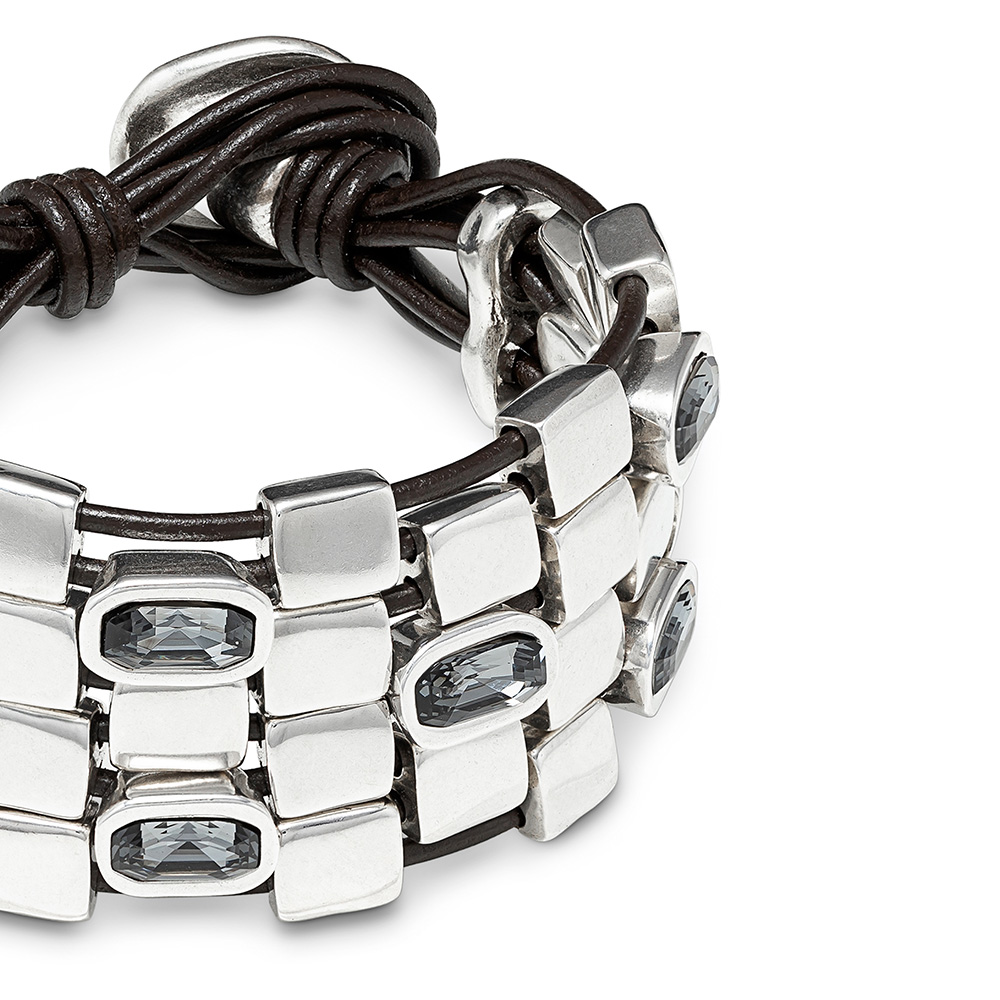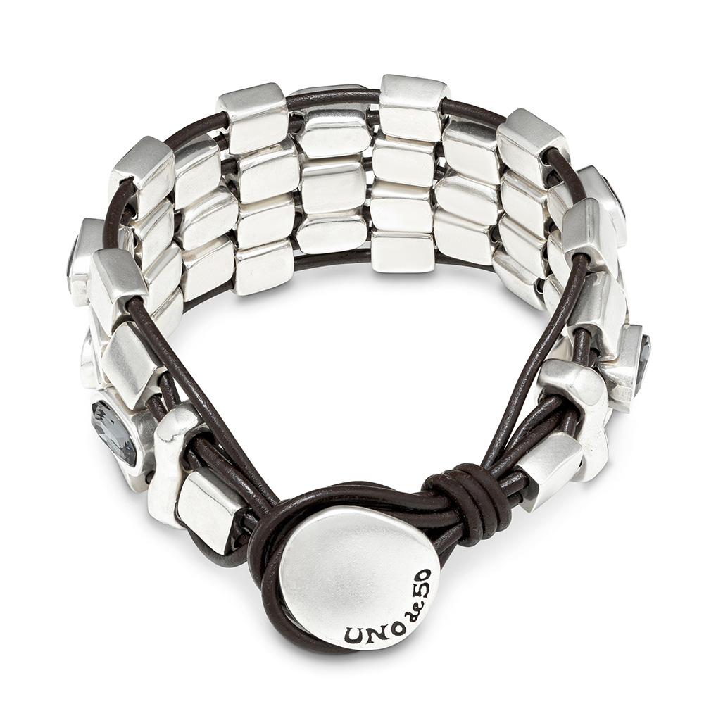 Особенности Серебряный браслет на кожаных шнурках c кристаллами Сваровски UNOde50 Boa