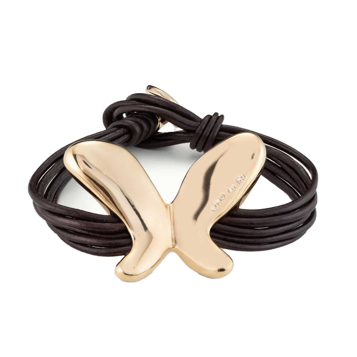 Кожаный браслет женский с золотом Бабочка UNOde50 Butterfly Effect