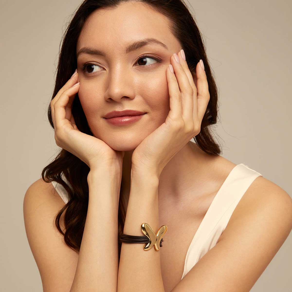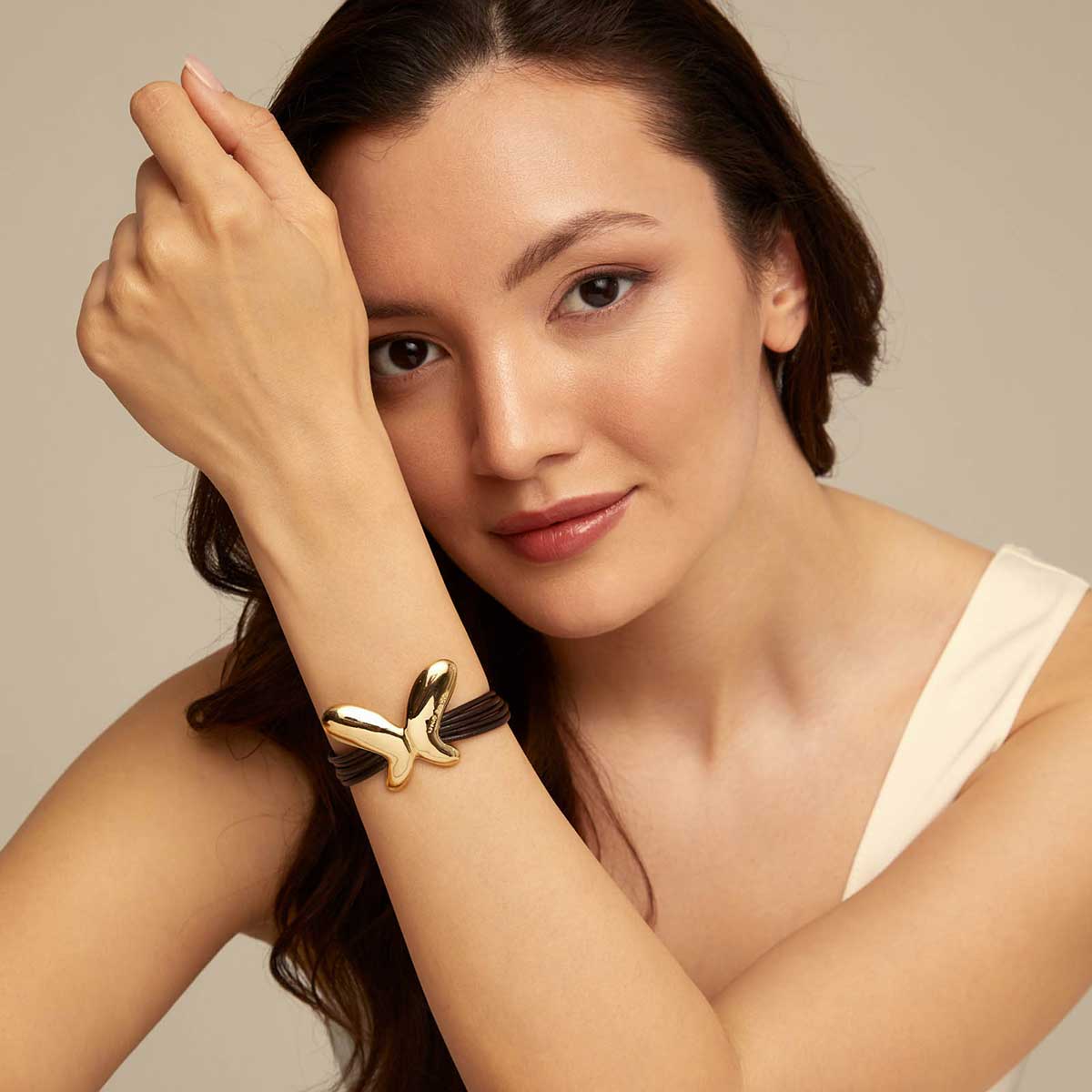 Описание Кожаный браслет женский с золотом Бабочка UNOde50 Butterfly Effect