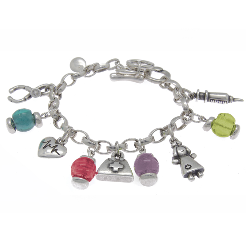 Описание Серебряный браслет с муранским стеклом Ciclon Enfermera