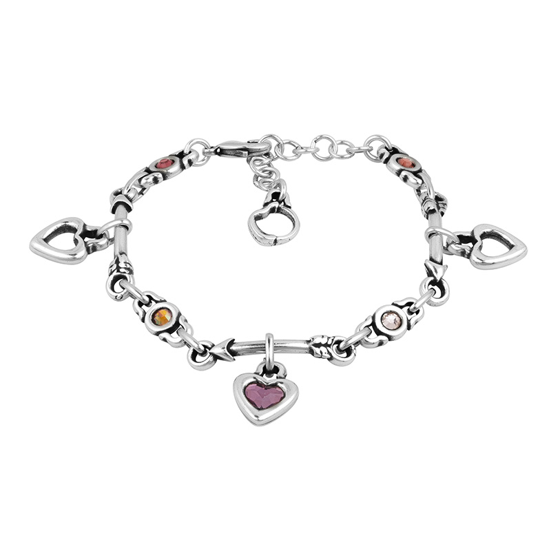 Серебряный браслет женский с сердечками мультиколор Ciclon Tricoure