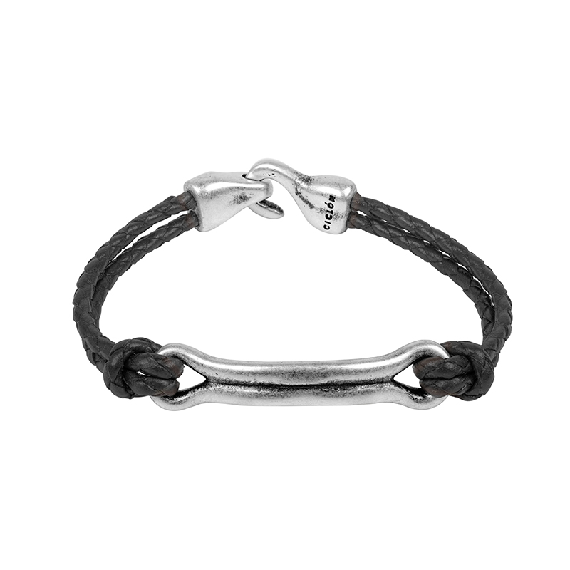 Кожаный браслет с серебряными вставками Ciclon De Hombre Amarre