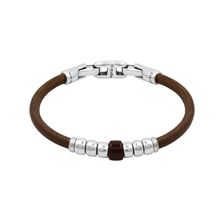 Кожаный браслет с серебряными вставками Ciclon Lars