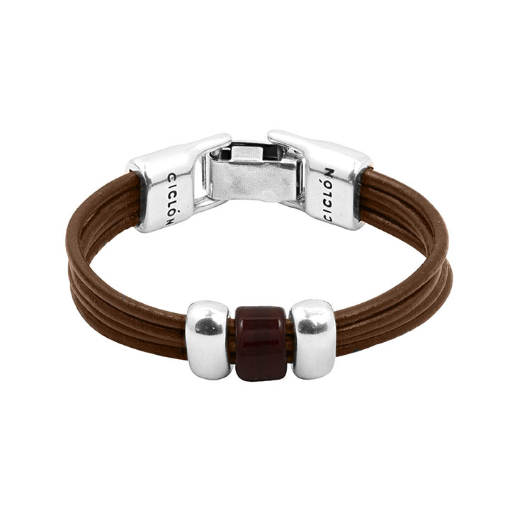 Описание Кожаный браслет мужской с серебряными вставками Ciclon Gael