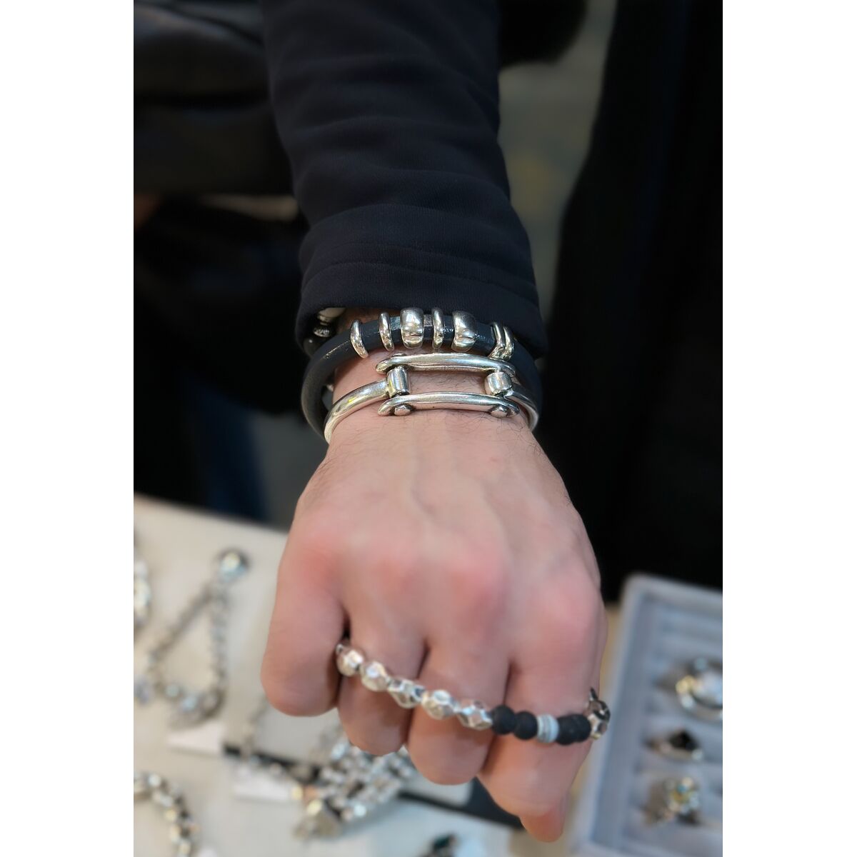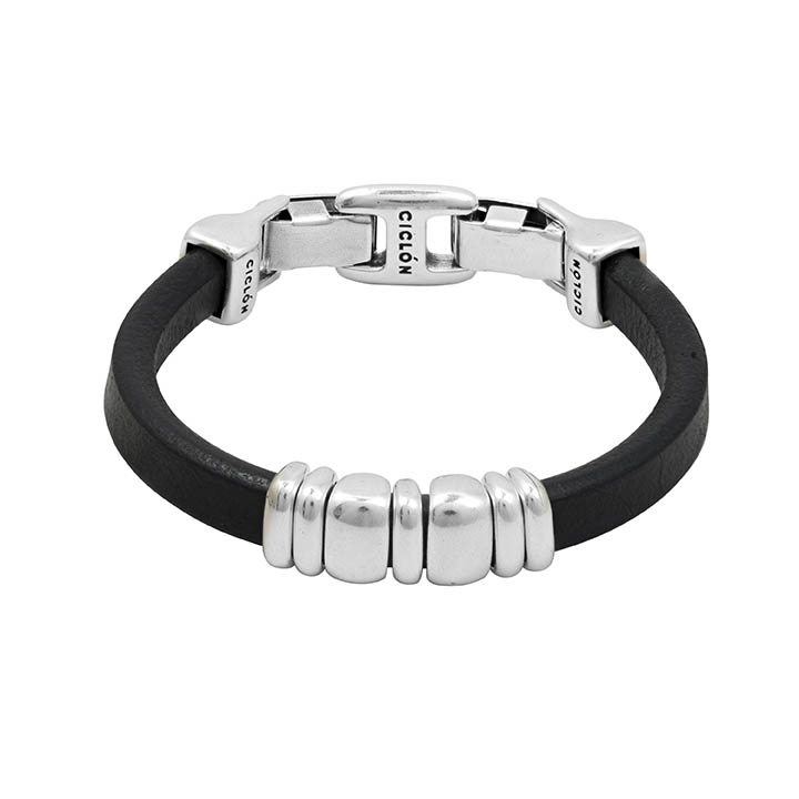 Кожаный браслет с серебряными вставками Ciclon Toi