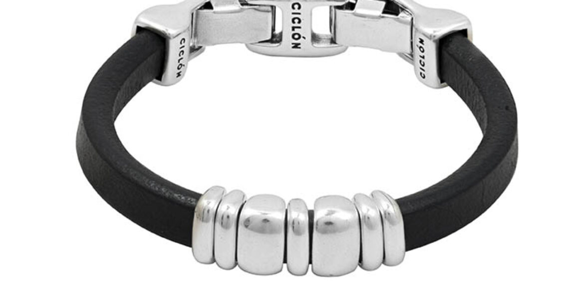 Кожаный браслет с серебряными вставками Ciclon Toi