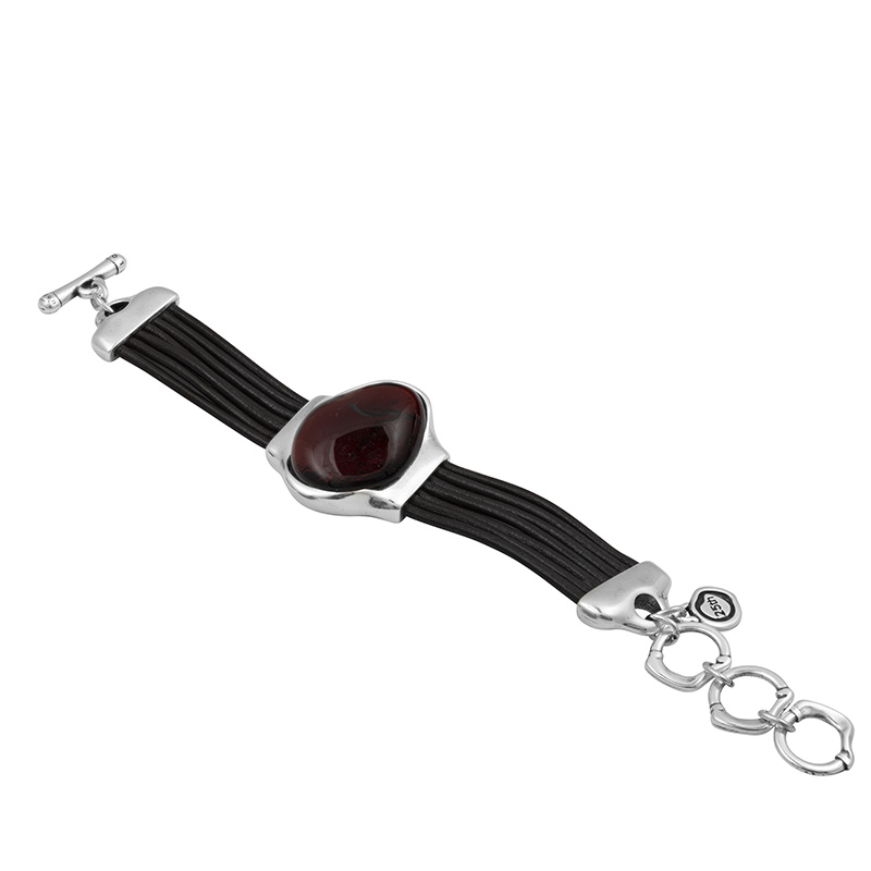 Кожаный браслет с серебряными вставками Ciclon Vega