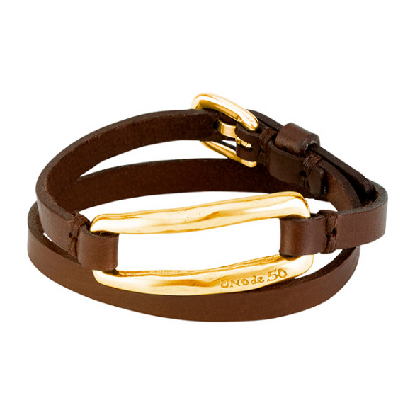 Кожаный браслет с золотыми вставками UNOde50 Double trapped