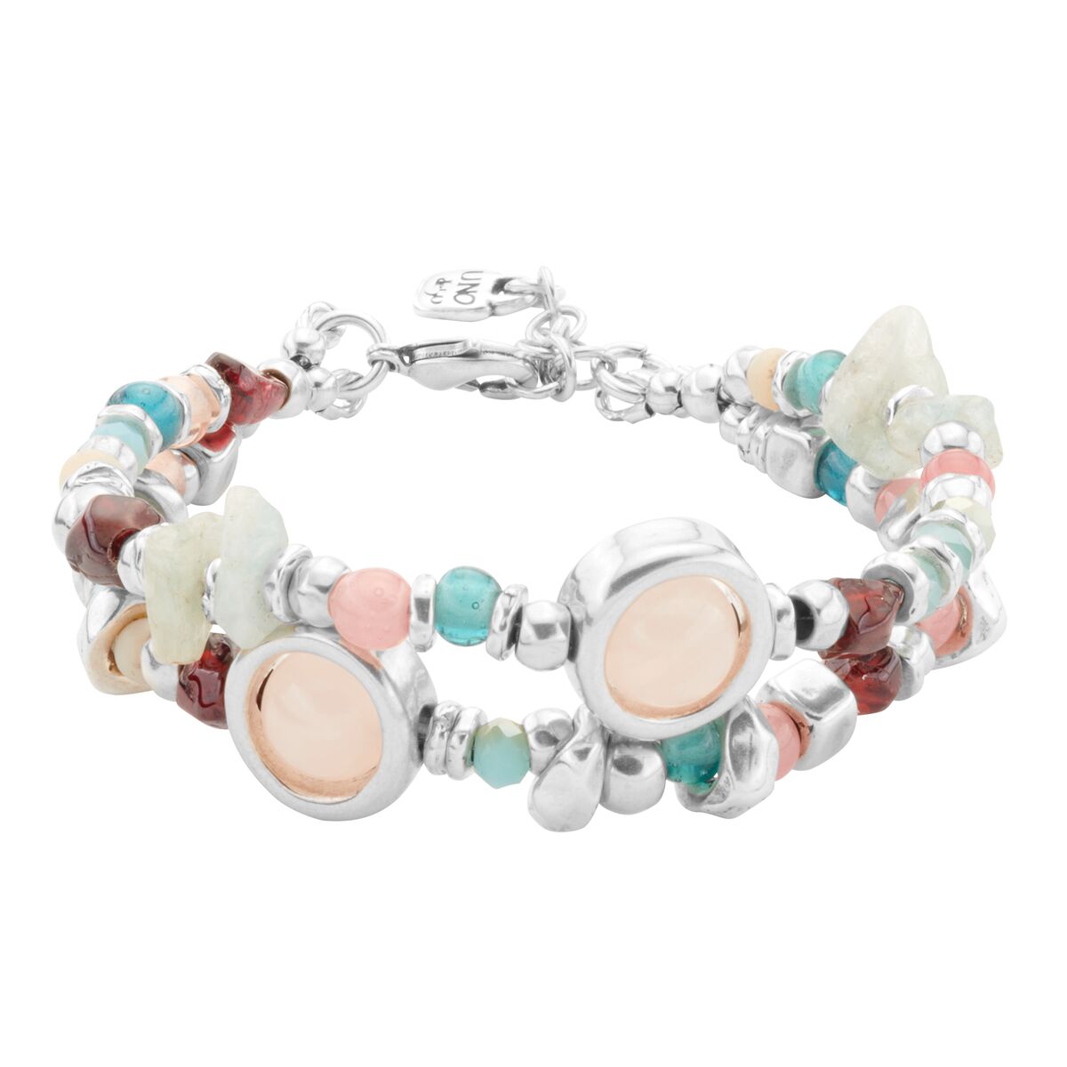 Серебряный браслет женский двойной с розовым кварцем UNOde50 Energy