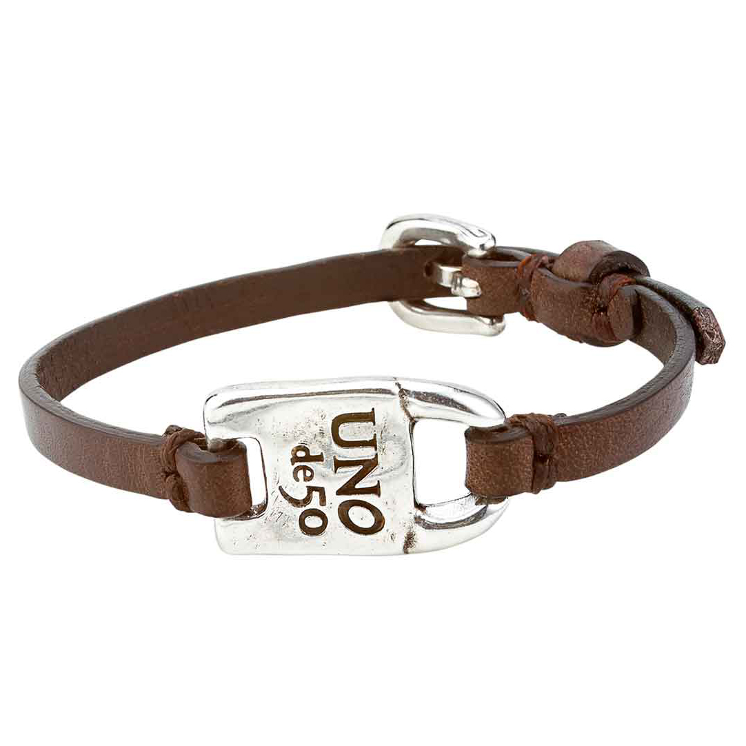 Кожаный браслет с серебряными вставками UNOde50 Genderless