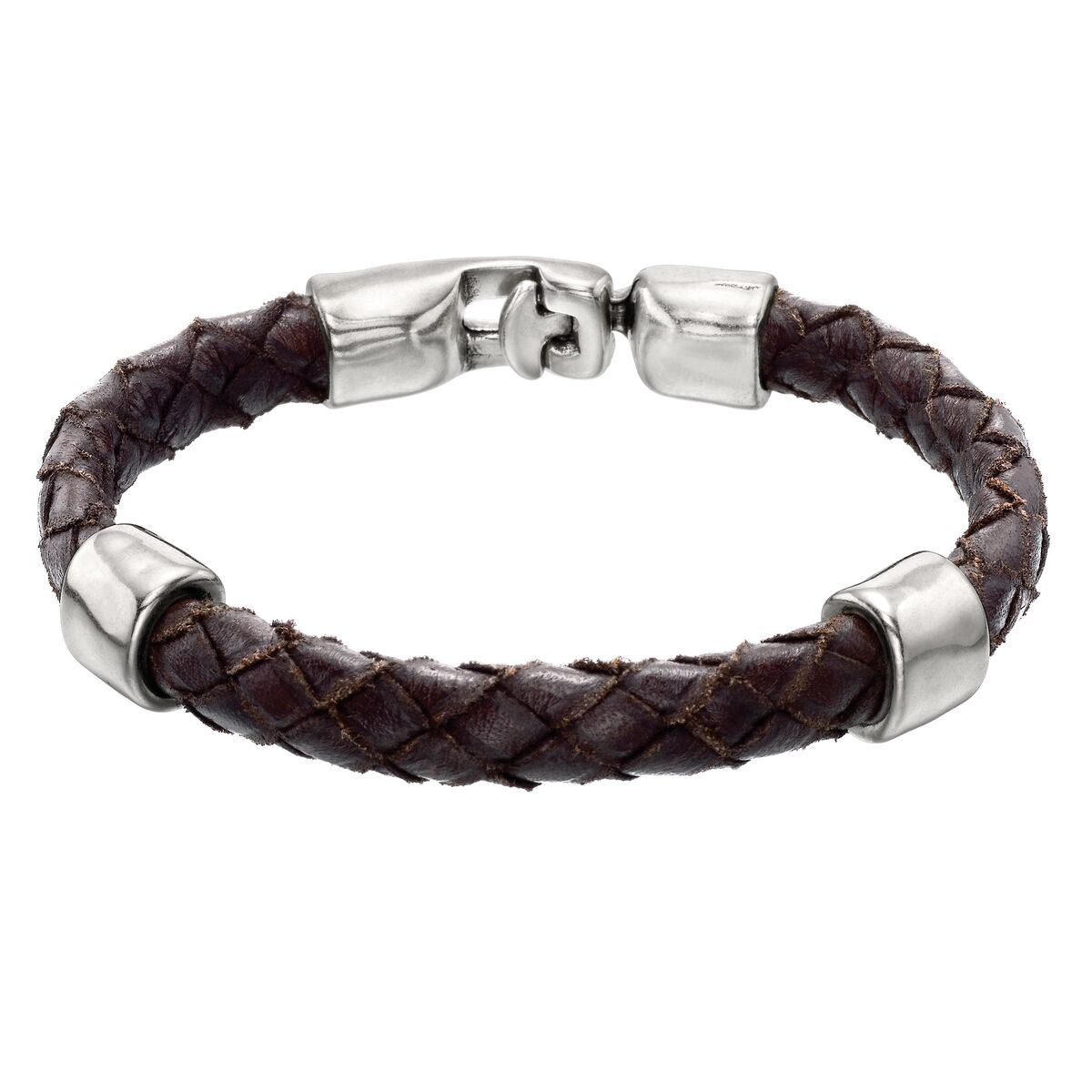 Кожаный браслет мужской с серебряными вставками UNOde50 Grappa
