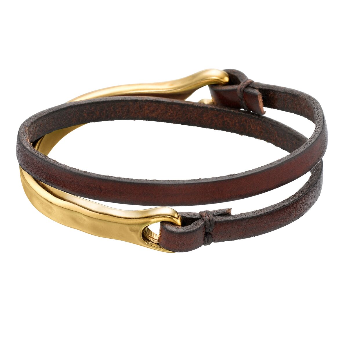 Золотой браслет женский на руку с кожаным ремешком UNOde50 Half turn