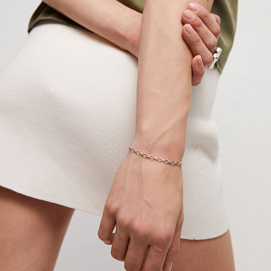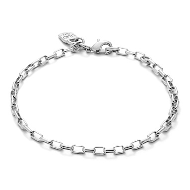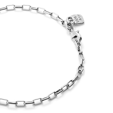 Классический браслет с серебром из коллекции Hazte Uno — универсальный аксессуар, способный украсить любой образ. Изделие ручной работы представляет собой цепочку, состоящую из перпендикулярных прямоугольных звеньев со скругленными углами. Благодаря интересной геометрии традиционное украшение приобретает актуальное звучание и привлекает внимание. Браслет изготовлен из уникального сплава с покрытием из стерлингового серебра. Фирменный замочек UNOde50, которым декорирована застежка-карабин, создает акцент и подчеркивает эксклюзивность украшения.