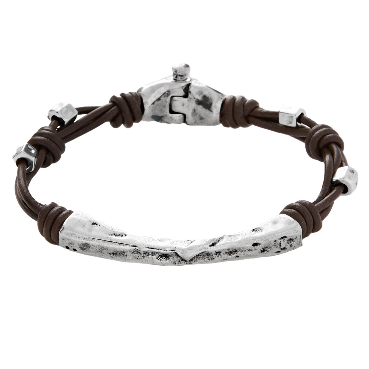 Кожаный браслет мужской с серебряными вставками UNOde50 He had it