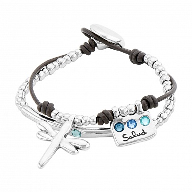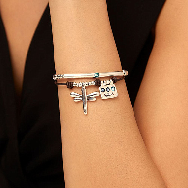 Описание Серебряный браслет женский двойной с кожей и подвеской UNOde50 Heal-me