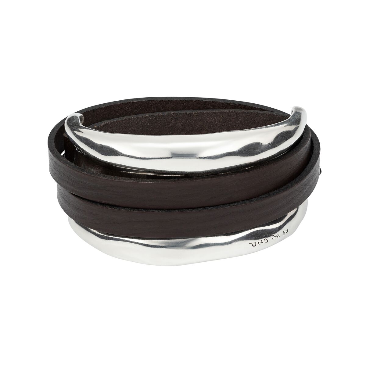 Описание Серебряный браслет жесткий с кожаными ремешками UNOde50 Hold me black