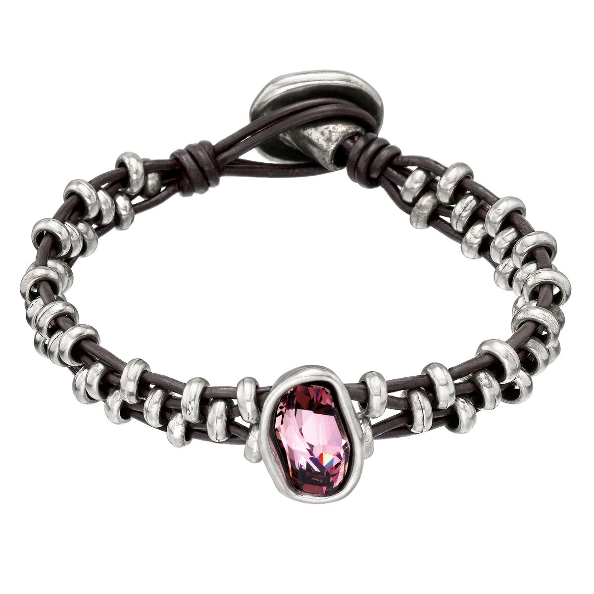 Описание Серебряный браслет женский на коже с кристаллом Сваровски UNOde50 I will survive