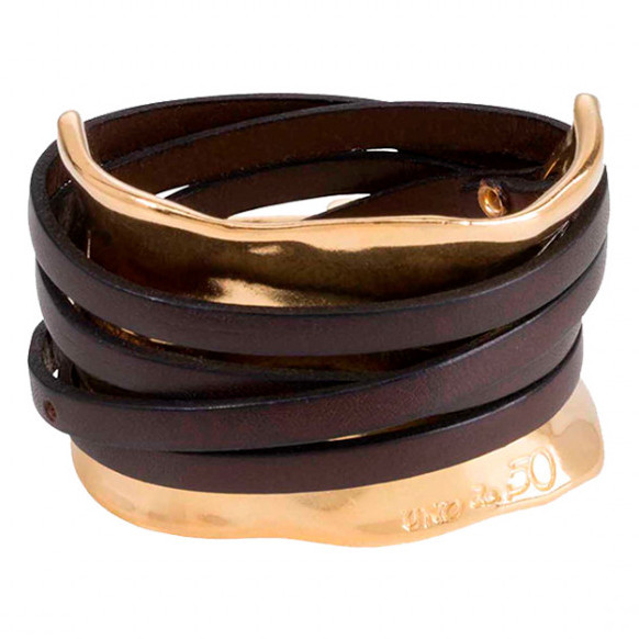 Золотой браслет женский с кожаными полосами Ибица UNOde50 Ibiza