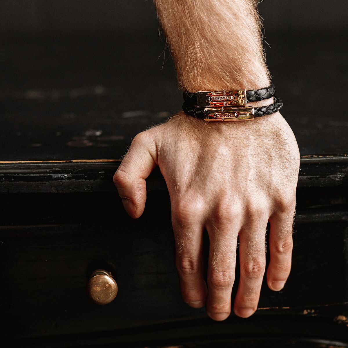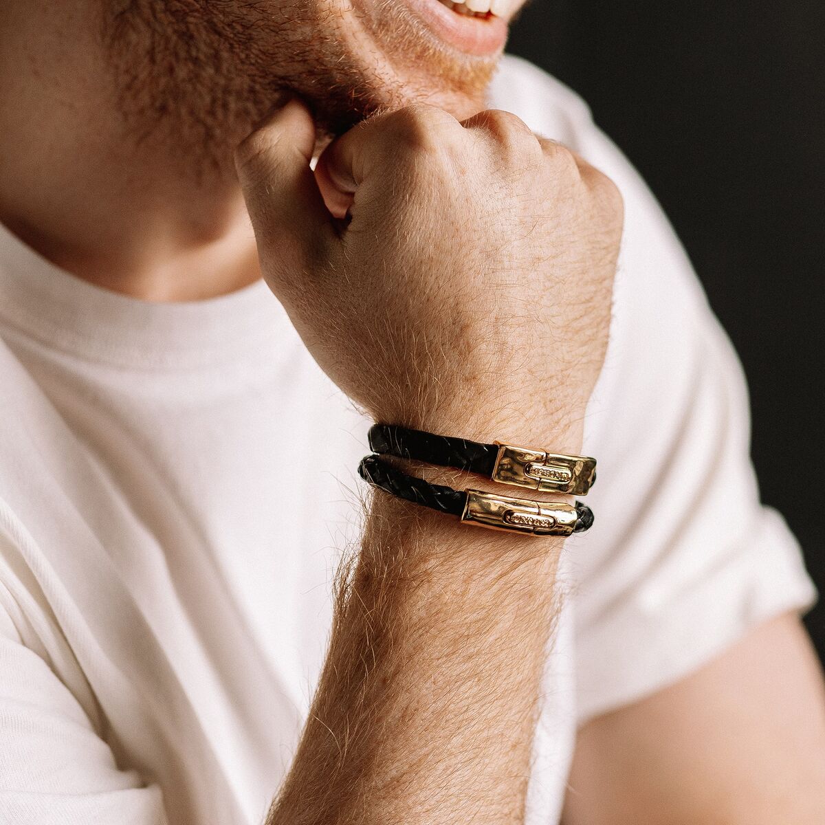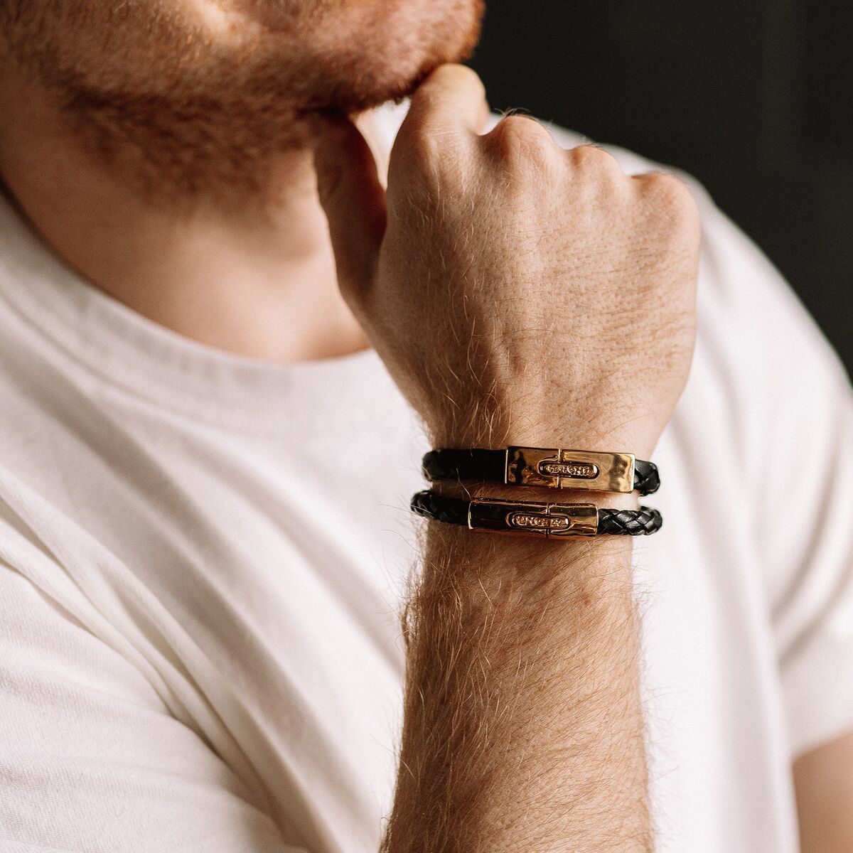 Кожаный браслет мужской с золотом На связи UNOde50 In touch