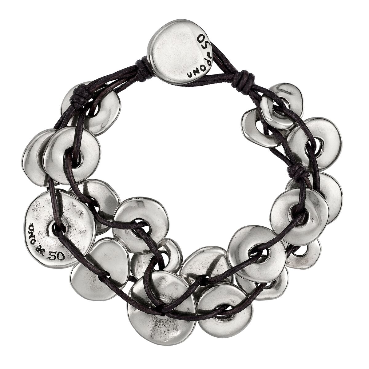Кожаный браслет женский с серебряными вставками UNOde50 Knock on wood