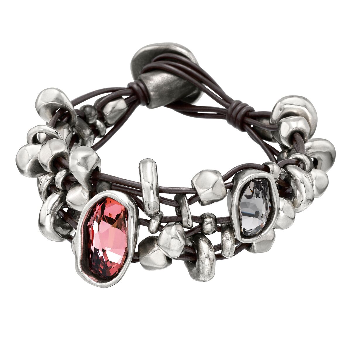 Кожаный браслет с серебряными бусинами и кристаллами Сваровски UnoDe50 Lady marmalade