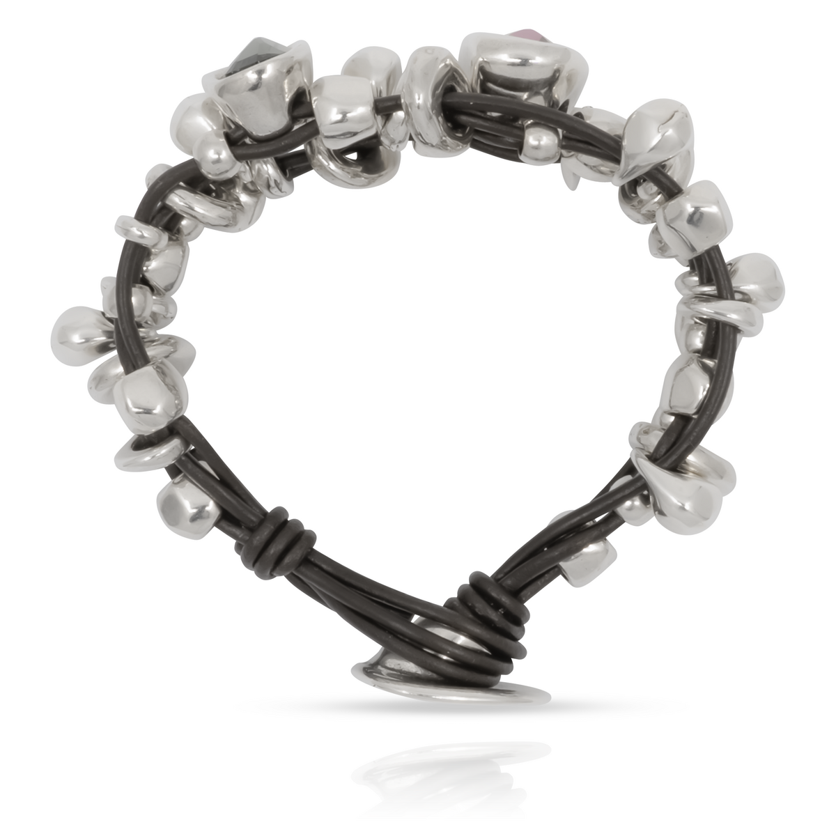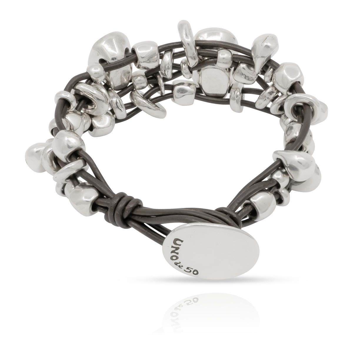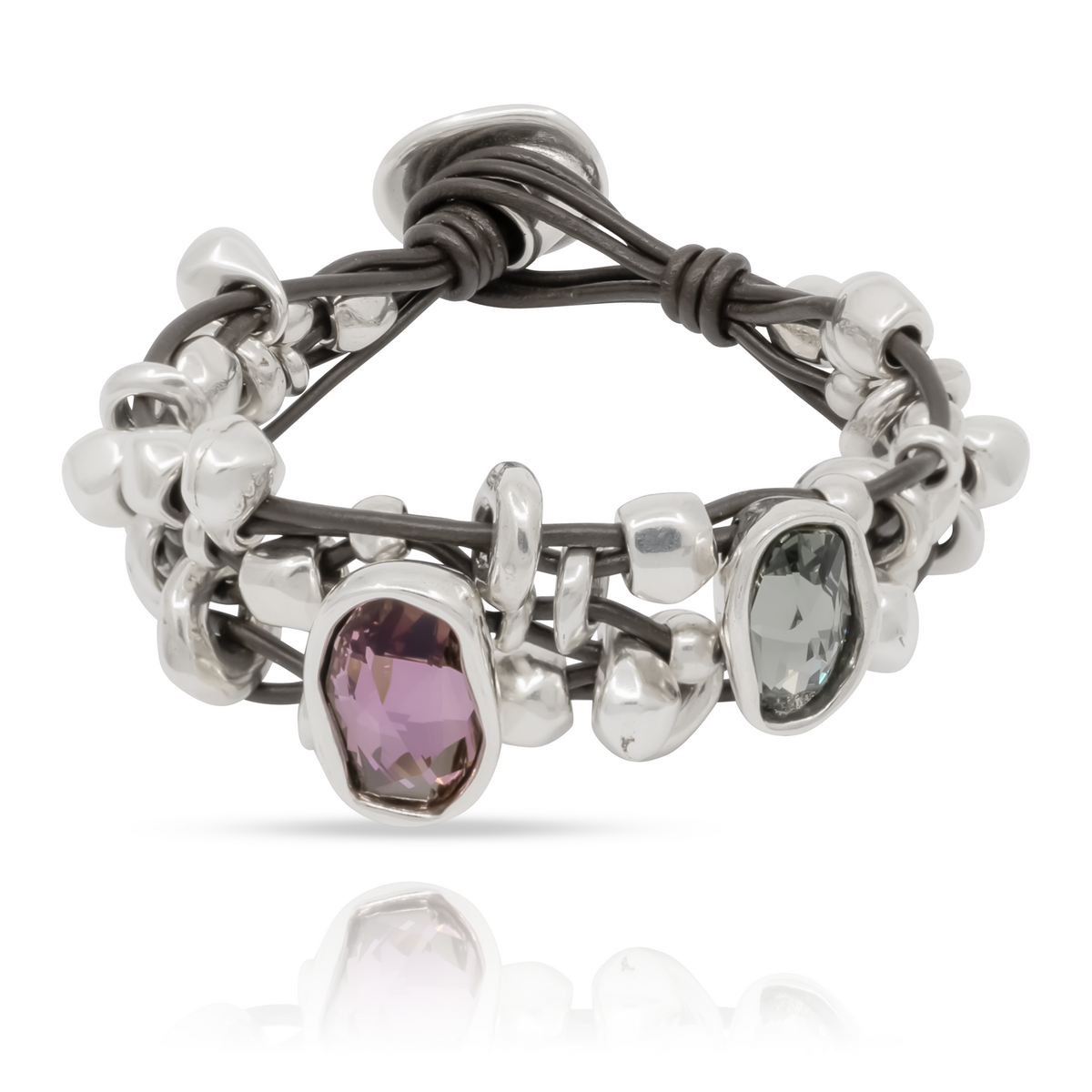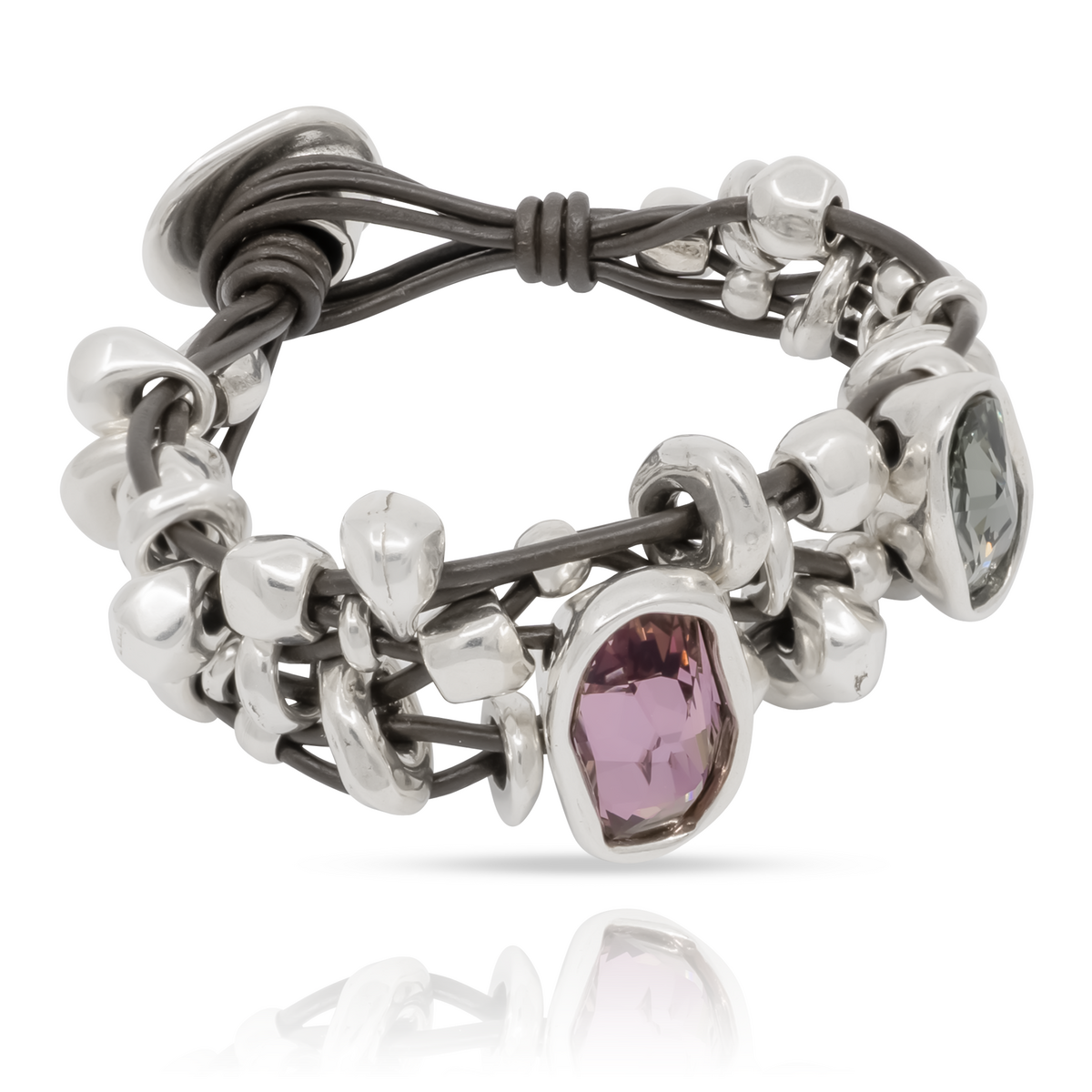 Кожаный браслет с серебряными бусинами и кристаллами Сваровски UnoDe50 Lady marmalade