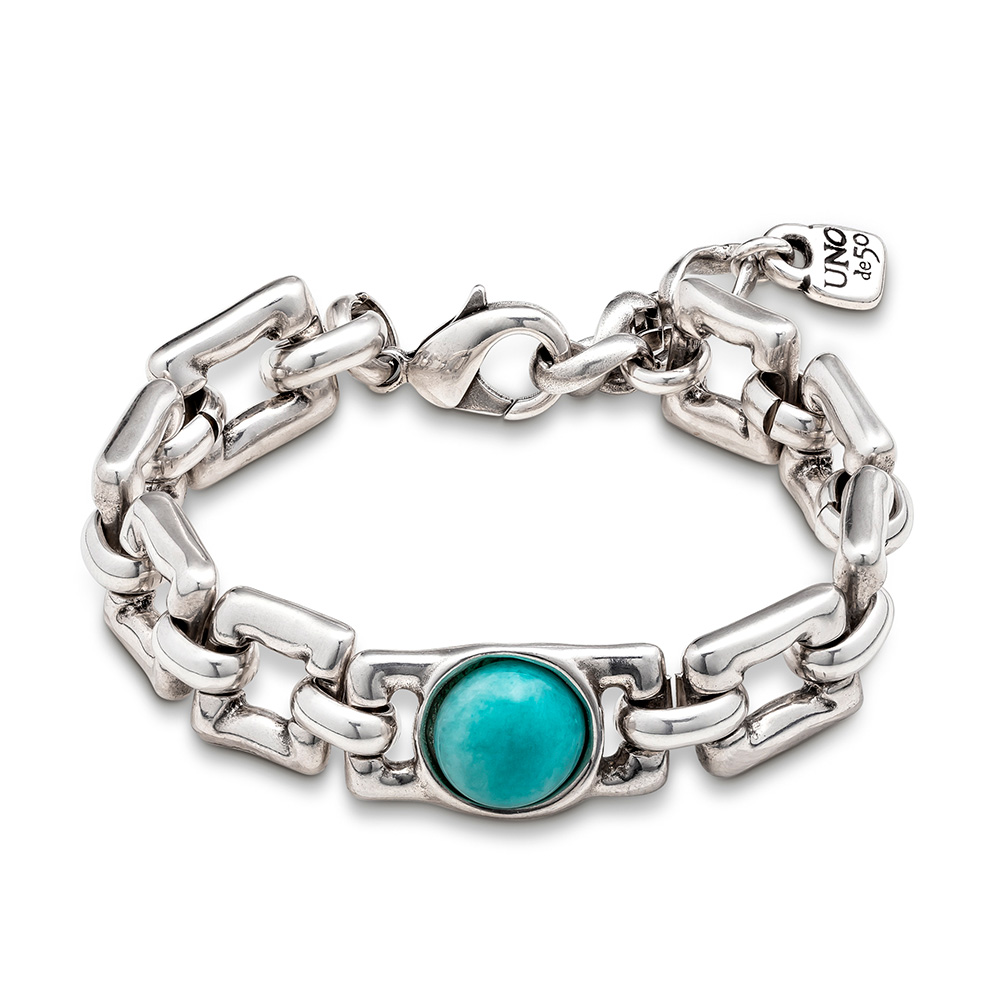 Серебряный браслет женский с квадратными звеньями и бирюзой в центре UNOde50 Linda