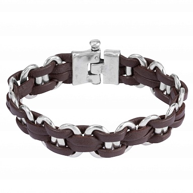 Особенности Кожаный браслет мужской с серебряными вставками UNOde50 Linked