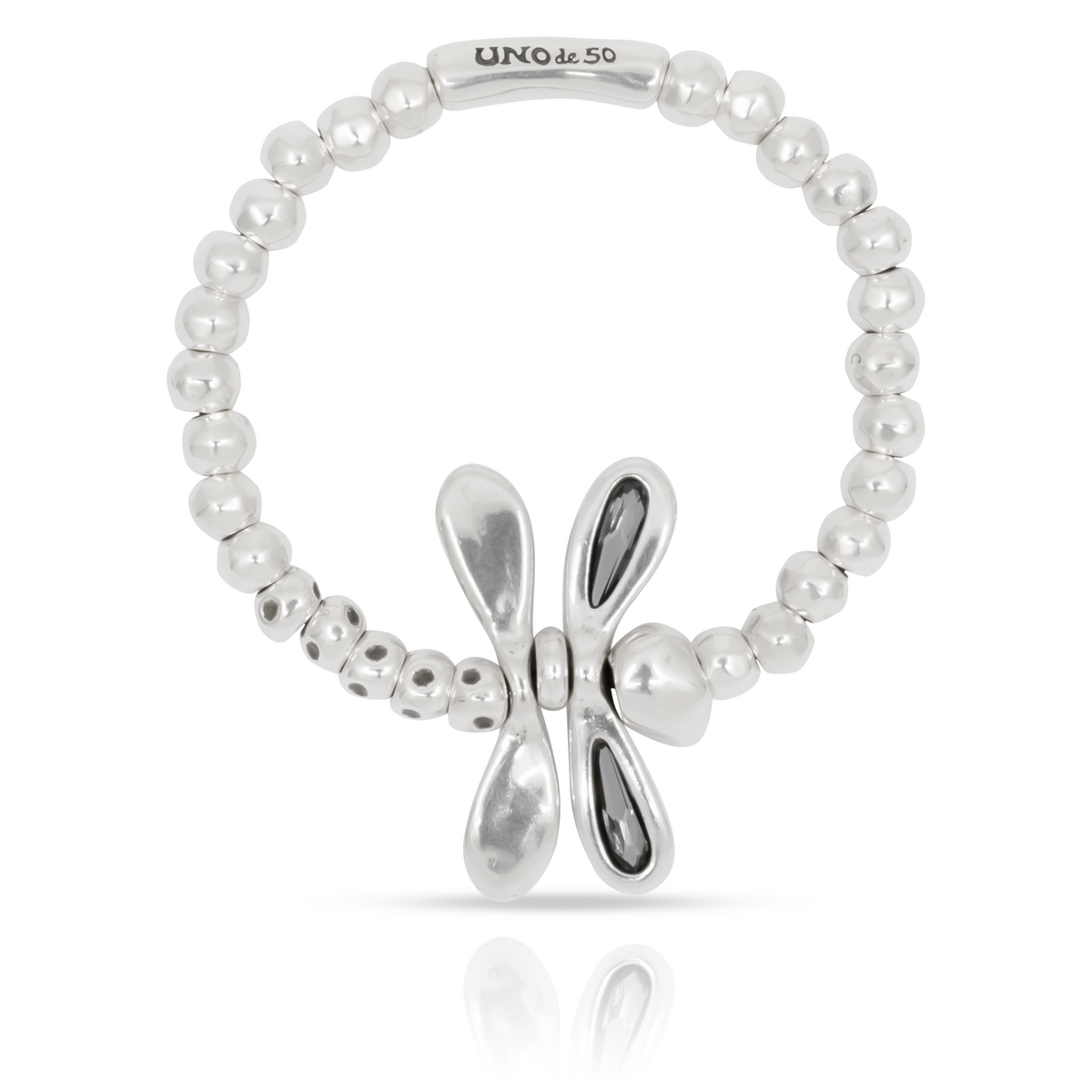 Уникальные украшения ручной работы UNOde50. Браслет "Little dragon-fly" из коллекции Sweetness. Размер L. Цвет серый.