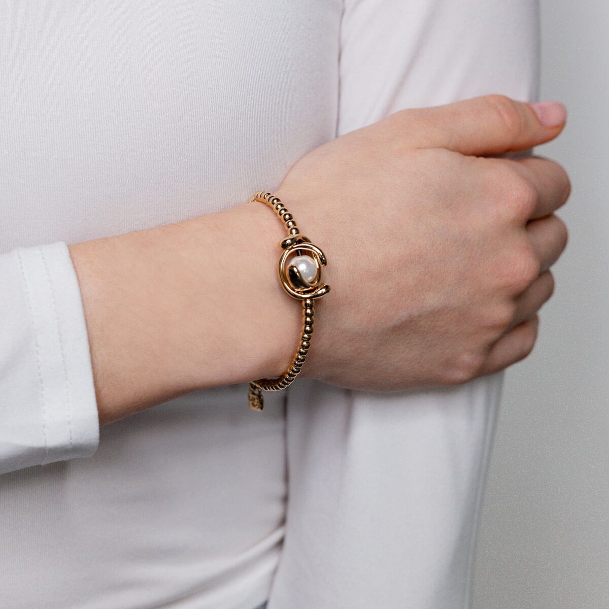 Описание Золотой браслет женский с жемчужиной в центре UNOde50 Little moon