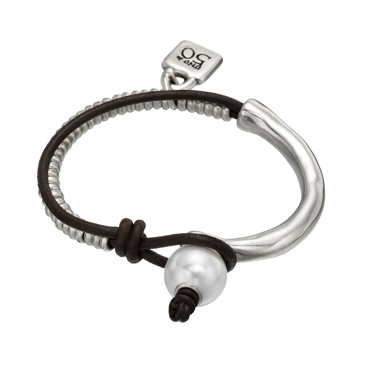 Кожаный браслет женский с серебряными вставками UNOde50 Lonely pearl