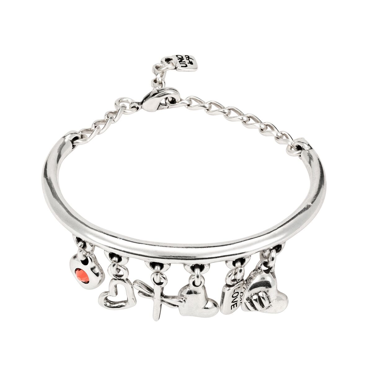 Серебряный браслет женский с изогнутой базой и шести амулетов UNOde50 Love Keys