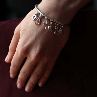 Описание Серебряный браслет женский с изогнутой базой и шести амулетов UNOde50 Love Keys