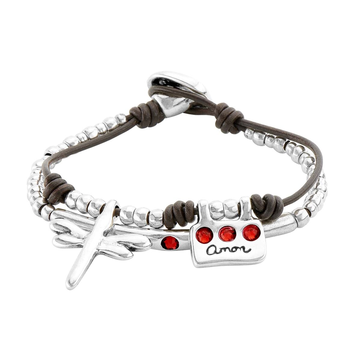 Описание Серебряный браслет женский двойной с кожей и подвеской UNOde50 Love