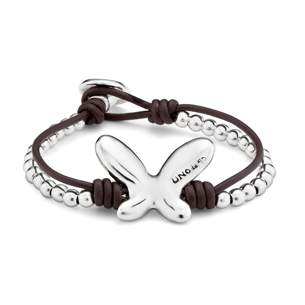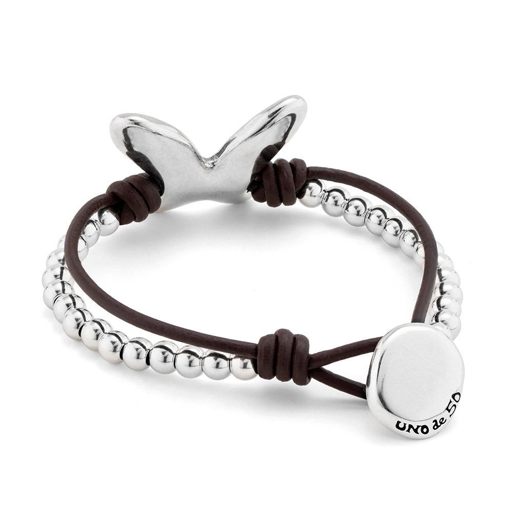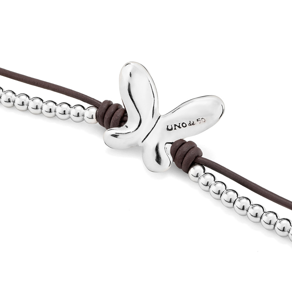 Серебряный браслет с натуральной кожей Бабочка UNOde50 Minifly