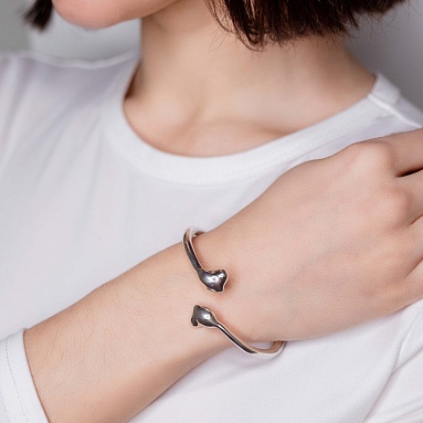Описание Жесткий браслет из серебра с сердечком UnoDe50 MutuaLove