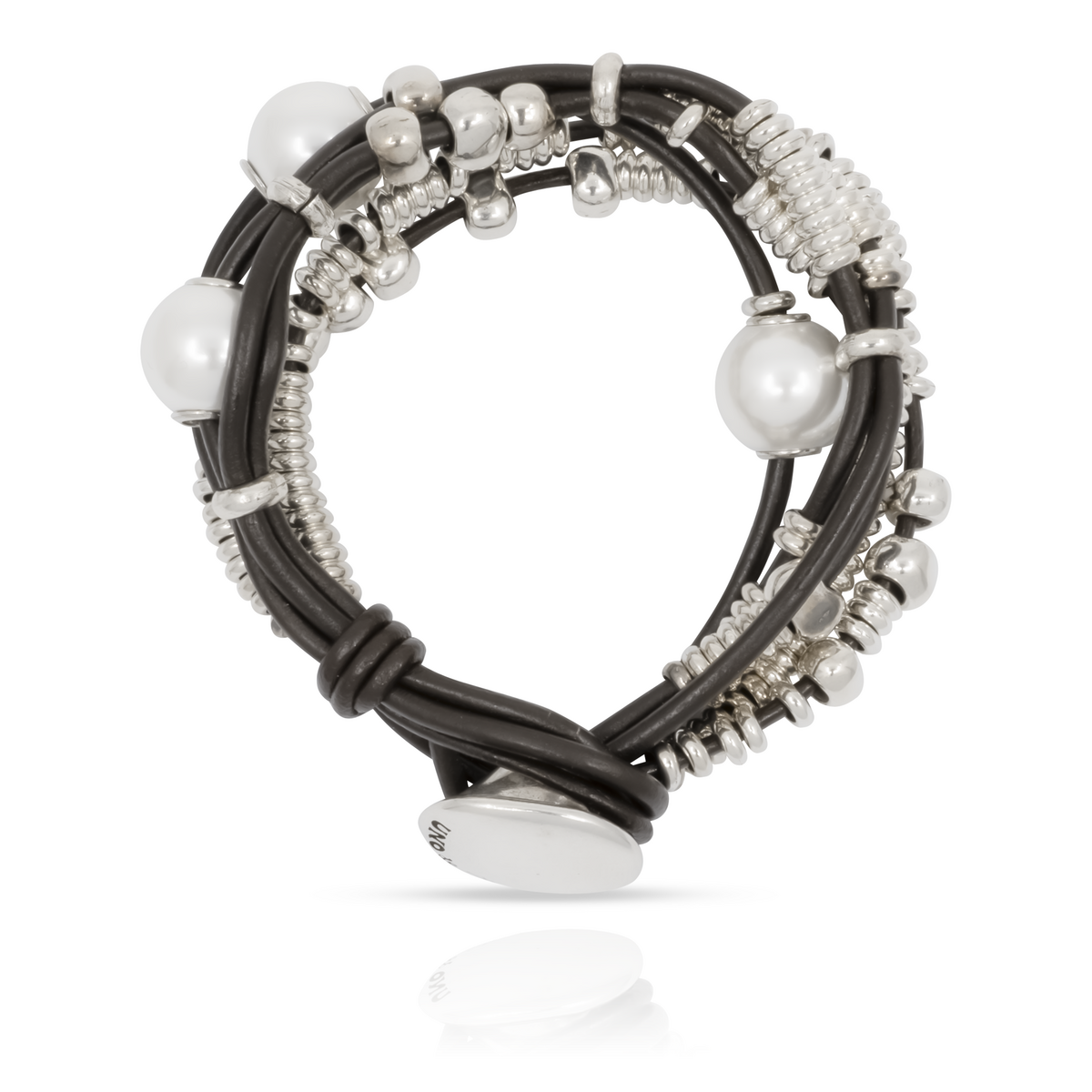 Серебряный браслет женский из кожаных нитей с жемчугом Орион UNOde50 Orion