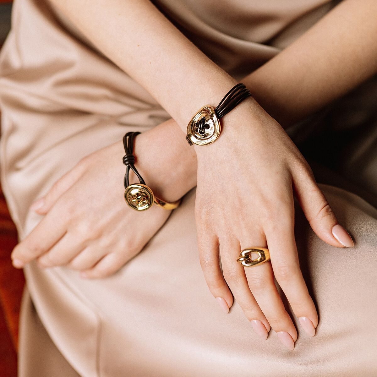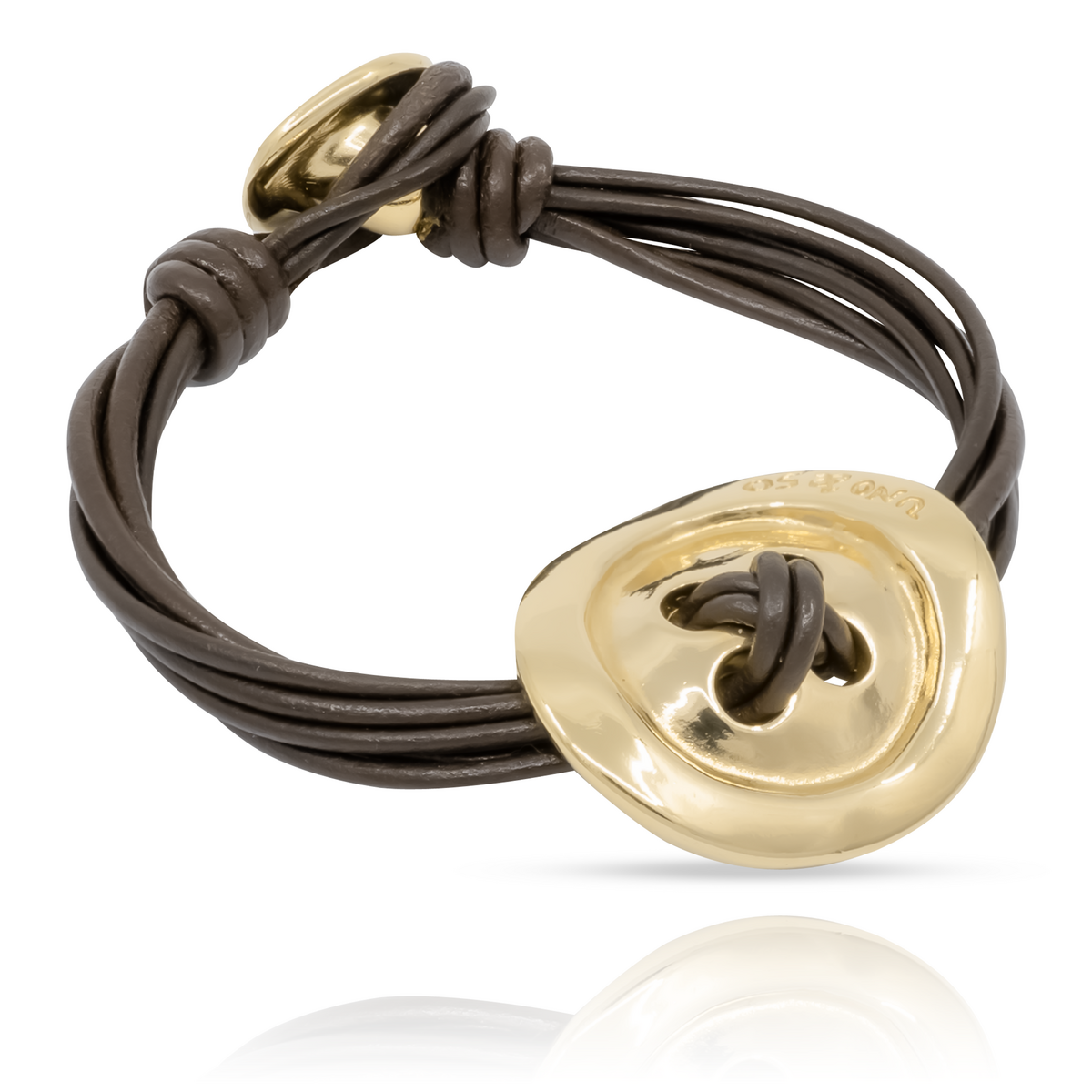 Браслет женский на руку из кожи с золотой пуговицей UnoDe50 Sew you
