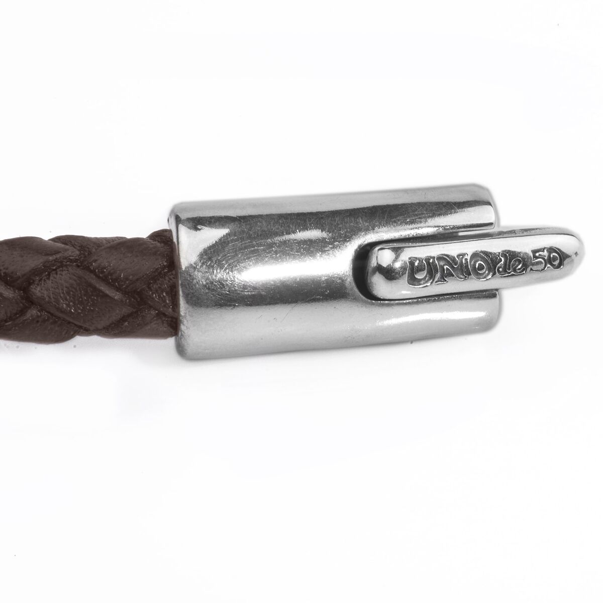 Кожаный браслет мужской с серебром Прочный UNOde50 Stable
