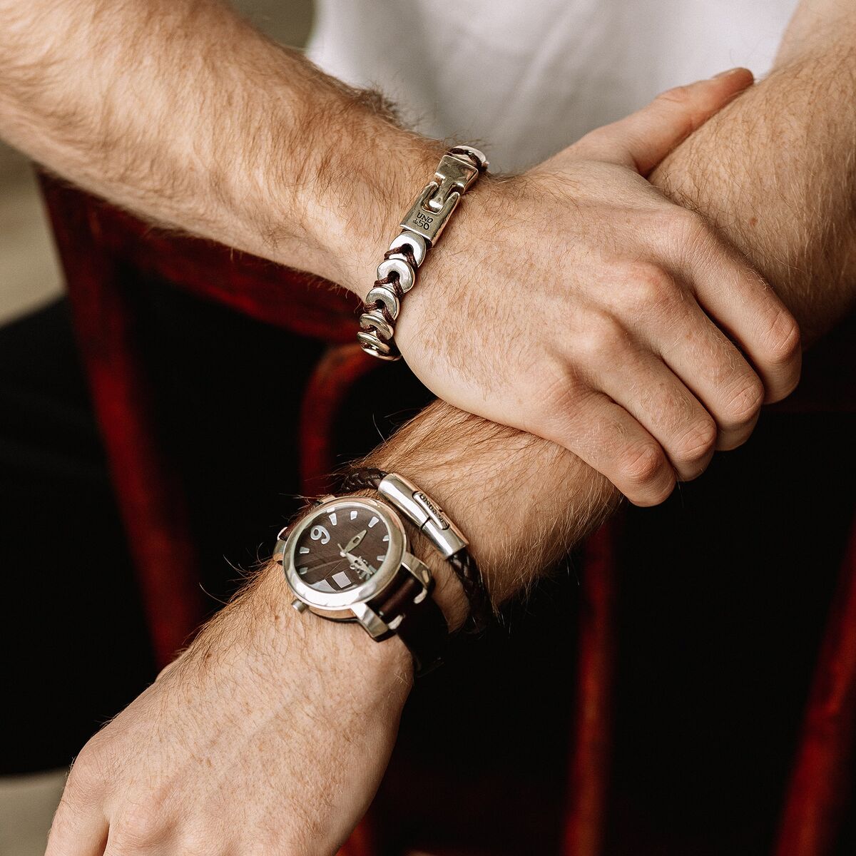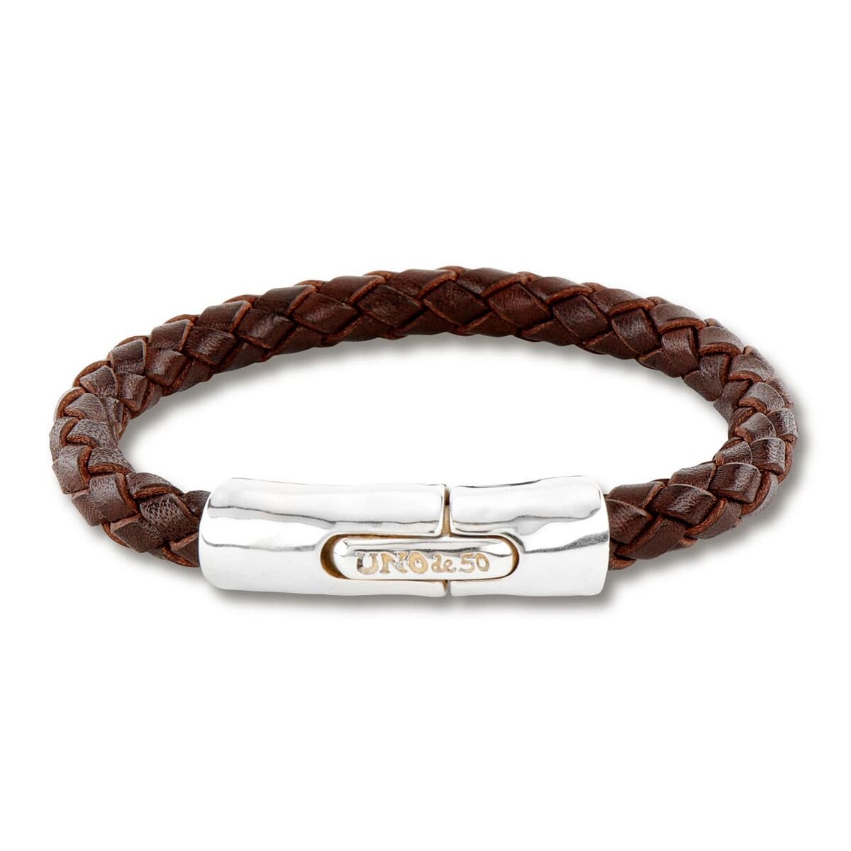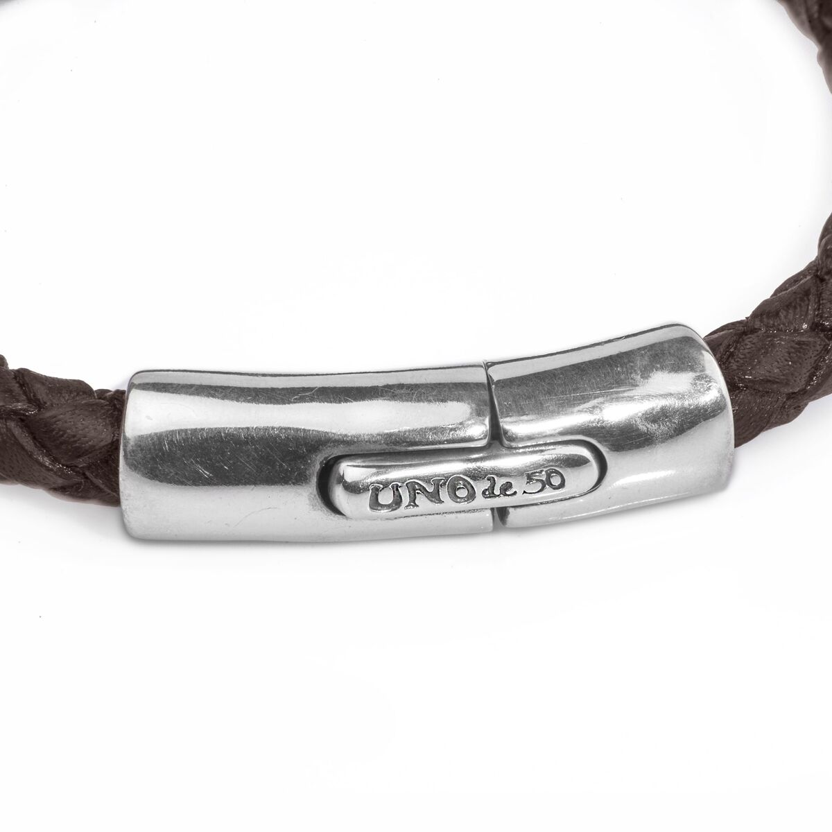Кожаный браслет мужской с серебром Прочный UNOde50 Stable