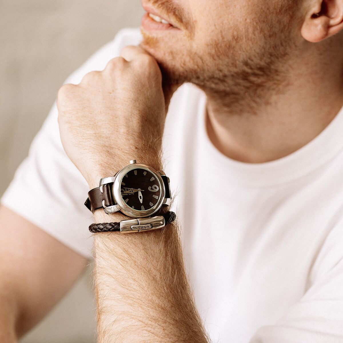 Описание Кожаный браслет мужской с серебром Прочный UNOde50 Stable