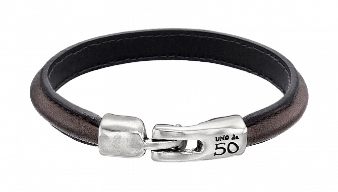 Кожаный браслет с серебряными вставками UNOde50 Stowaway